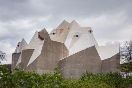 Maria, Königin des Friedens—often called the Mariendom—is a one-of-a-kind cathedral constructed in the 1960s. Its angular concrete rooflines and asymmetrical galleries form a bold sculptural exterior. Inside, stained-glass windows cast brilliant colour across the space, filling the cathedral with unexpected warmth.